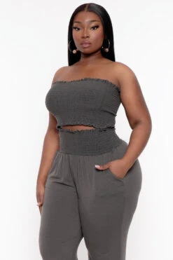 This plus size stretch knit cute two-piece set features a top with a scoop neckline, long sleeves, has an elastic waist for added comfort, an asymmetrical hem, and form fitting silhouette This cute matching set is perfect to dress up or down!