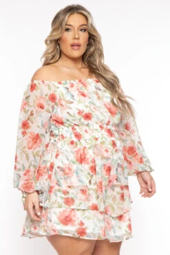 This plus size, stretch two-piece set features a crop top with a scoop neckline, short sleeves, elastic ribbed crop hem, a matching skirt with an elastic waist, and form fitting silhouette