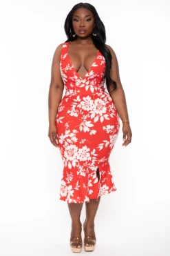 This plus size, stretch dress features a round neckline, sleeveless, self tie sash at the front and a matching cardigan with slim sleeves
