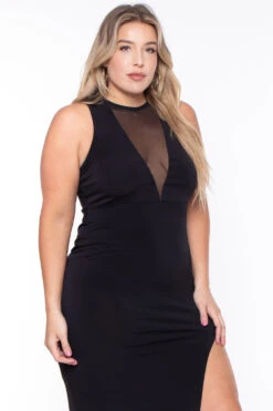 This plus size, stretch dress features a round neckline, sleeveless, self tie sash at the front and a matching cardigan with slim sleeves