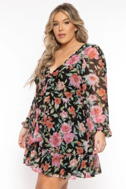 Plus Size Carolina Hi-Low Draped Dress – Black