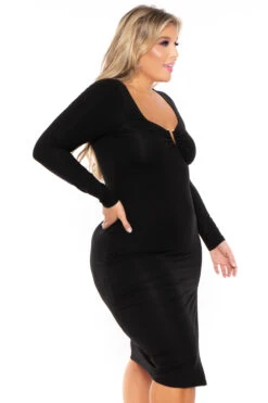 Plus Size Aliz Grommet Bodycon Dress- Black