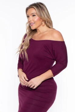 Plus Size Asymmetric Knit Dress – Burgundy Archived