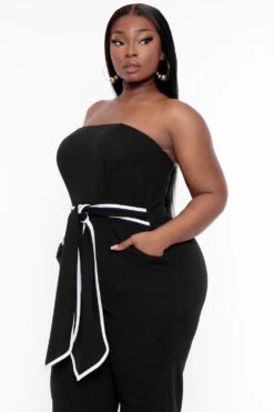 Plus Size Larisa Front Tie Jumpsuit- Black