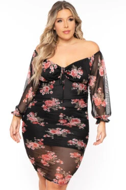 Plus Size Rosie Garden Mesh Bodycon Dress – Black